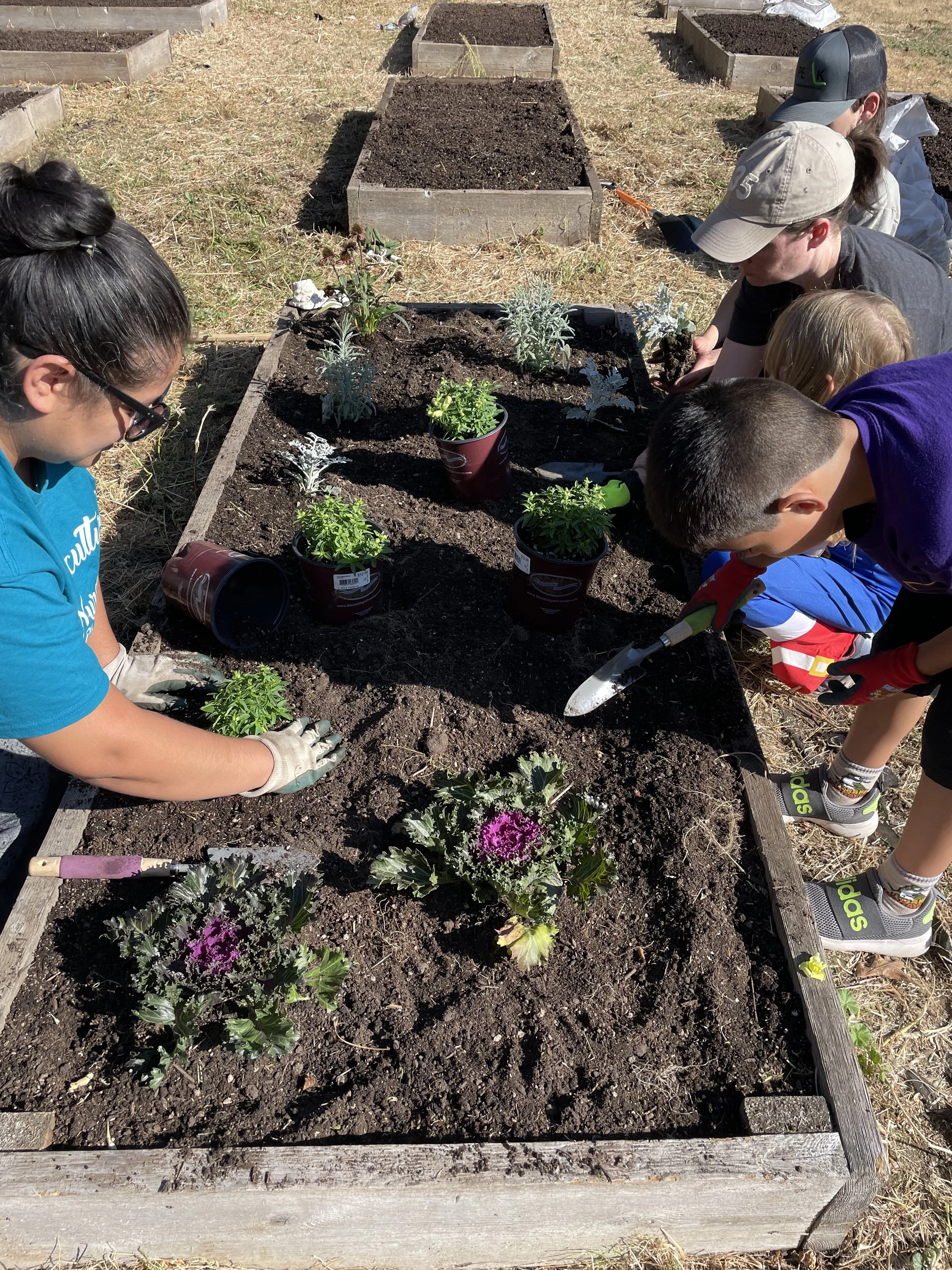 Late in September, a group of staff, students and parents at Washington Elementary School got a jump start on their garden clean up. They arrived early on a Saturday morning and removed plants that had finished for the season, spread new soil and planted a few fall vegetables and flowers. Once the leaves on campus begin to fall, they will rake some of them up and use them as mulch.