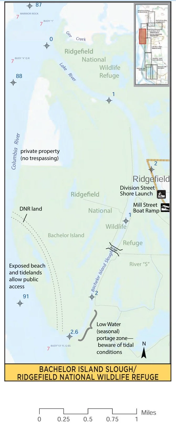 • Paddle from our boathouse on the Lake River out to the Columbia River and around Bachelor Island.